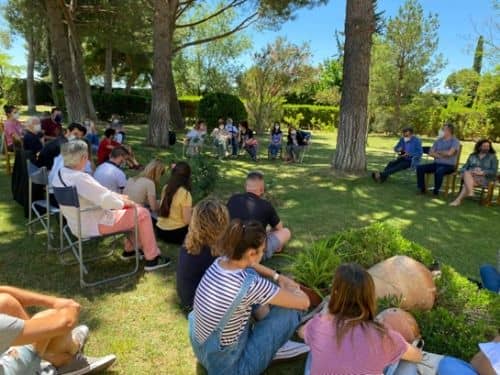 El jardín fue el lugar del encuentro: Emotivo saludo y bienvenida, oración de alabanza y sencillo compartir espontáneo antes de despedirnos. Después de la oración, hubo un rato largo para que los veteranos pudieran recorrer pausadamente los lugares de la Casa, de tantos recuerdos para ellos. A los más jóvenes, que son muchos, les ofrecimos en tres grupos una visita guiada por la casa, ermita y rincones del jardín. Nos dejaron un centro de flores precioso, una cajita en forma de casa llena de mensajes de agradecimiento y una carta –que transcribimos– con la que comenzamos la oración.