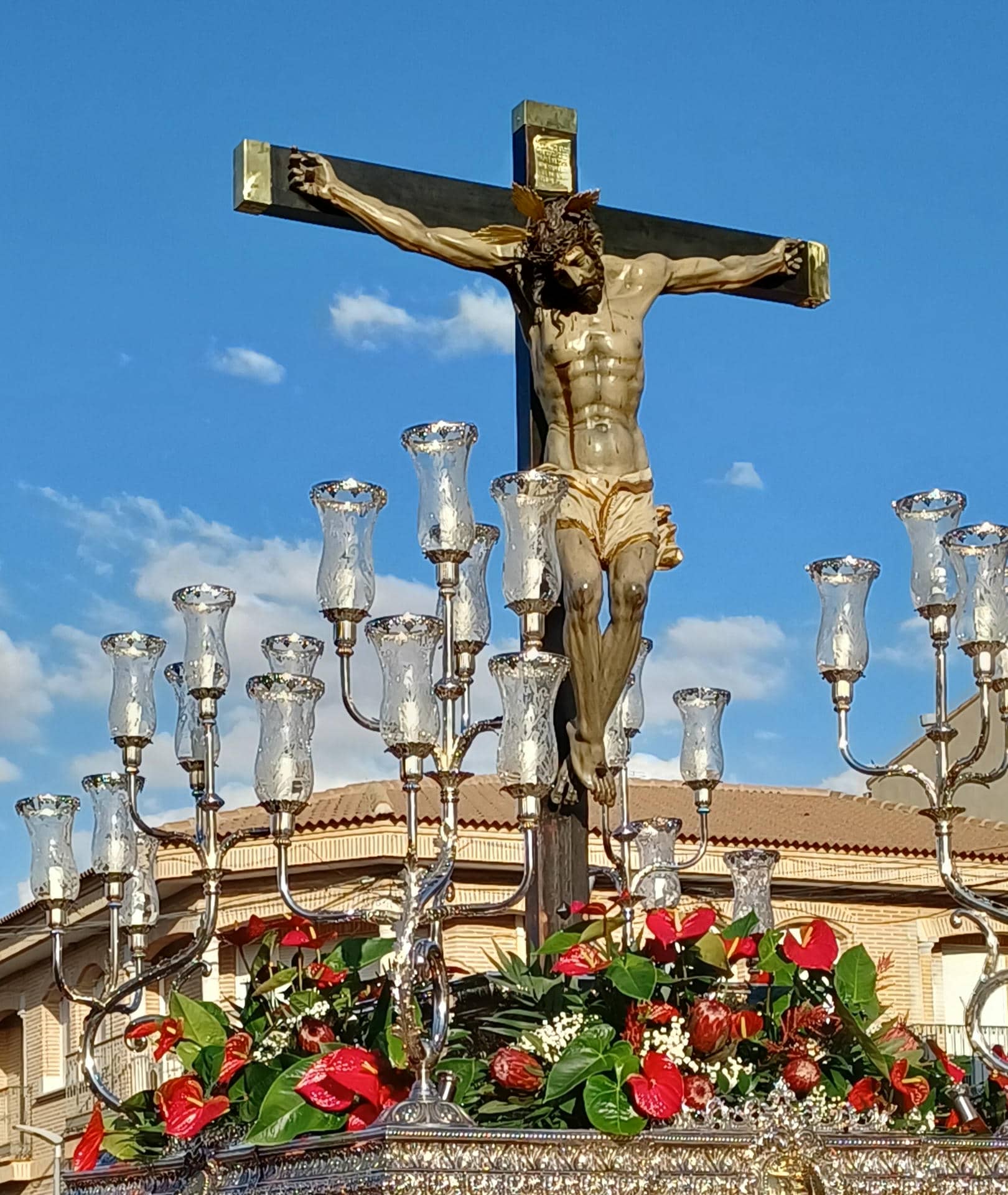 El día 25, en peregrinación, desde la ermita, bajan a la Virgen hasta la entrada del pueblo donde sale a recibirla el Cristo de la Vera Cruz que junto a Santa Ana acompañan a María, con sus grandes orquestas, hasta la Iglesia donde permanecerá todo el mes.