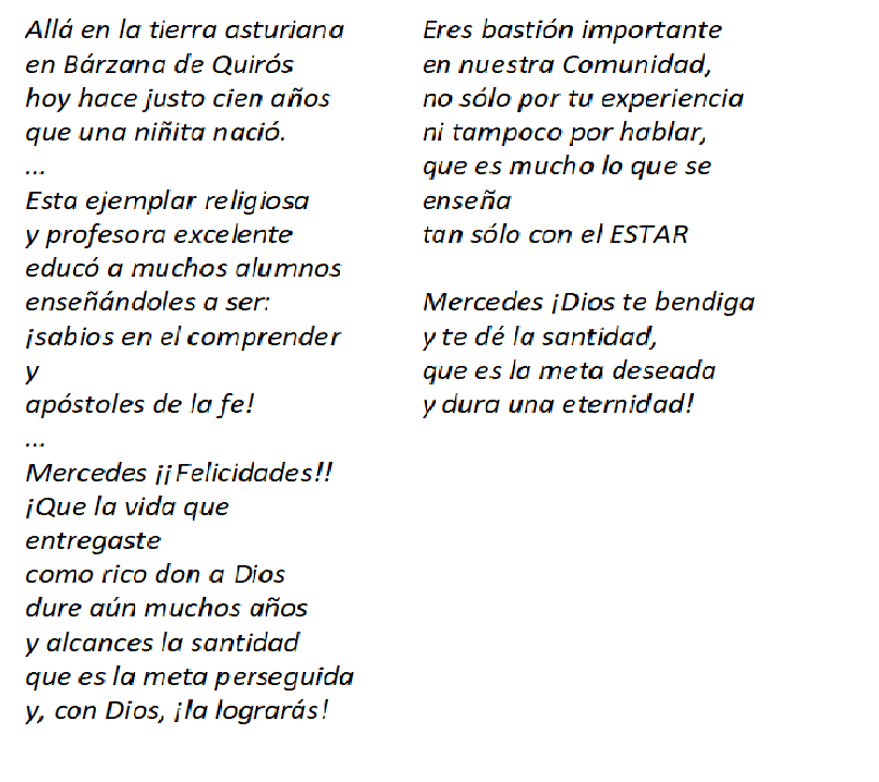 NUESTRA HERMANA MERCEDES FERNÁNDEZ (MADRID - CASA PROVINCIAL) CUMPLE 100 AÑOS