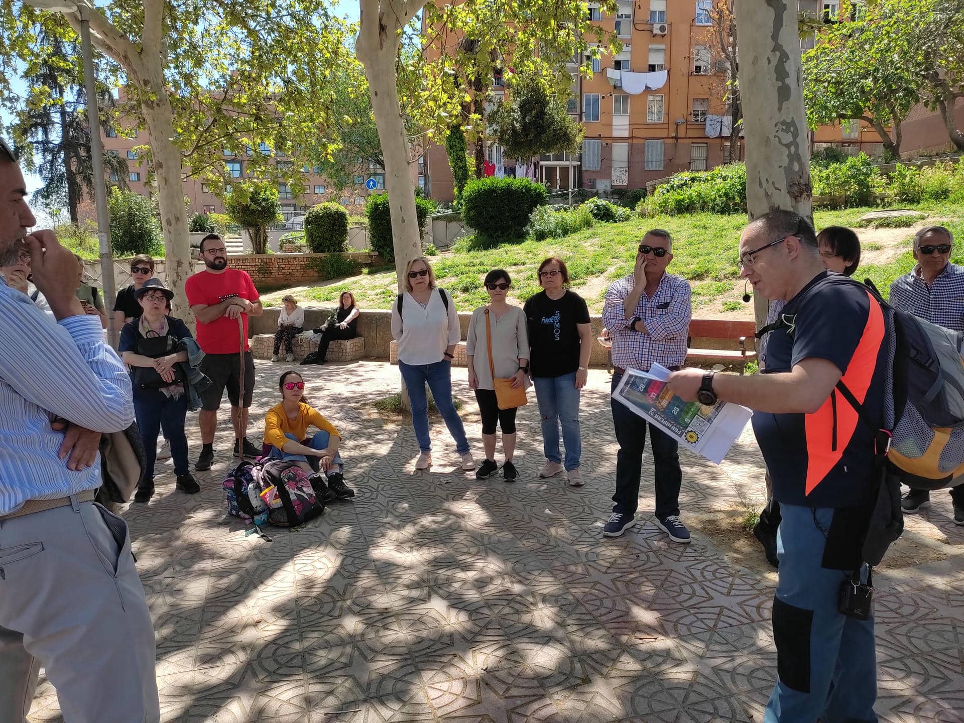 Nos encontramos en la plaza del Metro y desde allí fuimos recorriendo el barrio acompañados por una guía y un historiador que nos fueron explicando el origen y la evolución de las distintas colonias que forman el barrio.