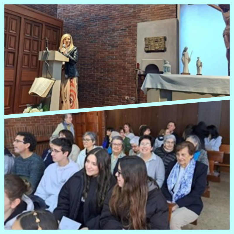 Seguiu-se o Quarto de Hora de Oração-Concerto, que é essencial ao nosso carisma, com a música e os cânticos de Voces de Barro, um grupo musical que nasceu no Colégio, no qual participaram alguns antigos alunos. O concerto-oração foi acompanhado pela projeção de imagens bonitas e motivadoras que nos ajudaram a rezar. Foi importante recordar as Irmãs Carmen Cañada e Isabel Toyos, tanto na mensagem de Cristina como na seleção dos cânticos. Elas foram recordadas com emoção, pois foram as promotoras deste grupo musical. A música tem marcado a identidade do Centro, desde os tradicionais Festivais da Canção aos Cânticos de Natal, para além de uma discografia com oito álbuns editados.