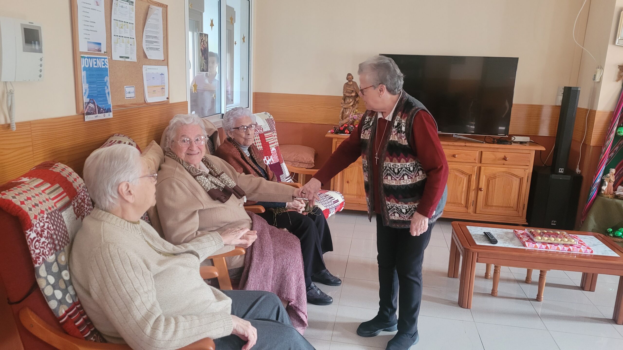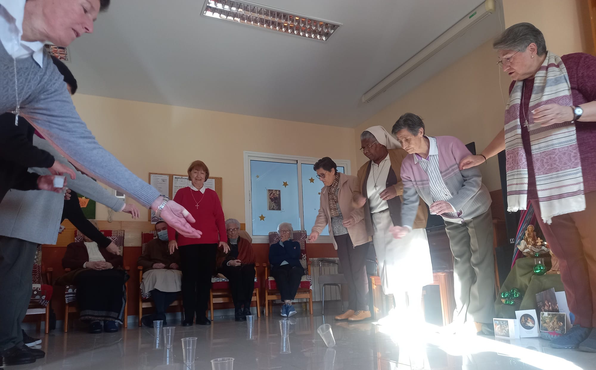 Por volta do meio-dia, foram chegando as irmãs e, as da Residência de Huelva, estavam felizes em recebê-las. Tudo estava preparado e também uma preciosa sala de jantar para a nossa refeição fraterna. Nos preparativos, pudemos sentir nos nossos corações: “Vede que docura, que delícia é para viverem juntas as irmãs”.
