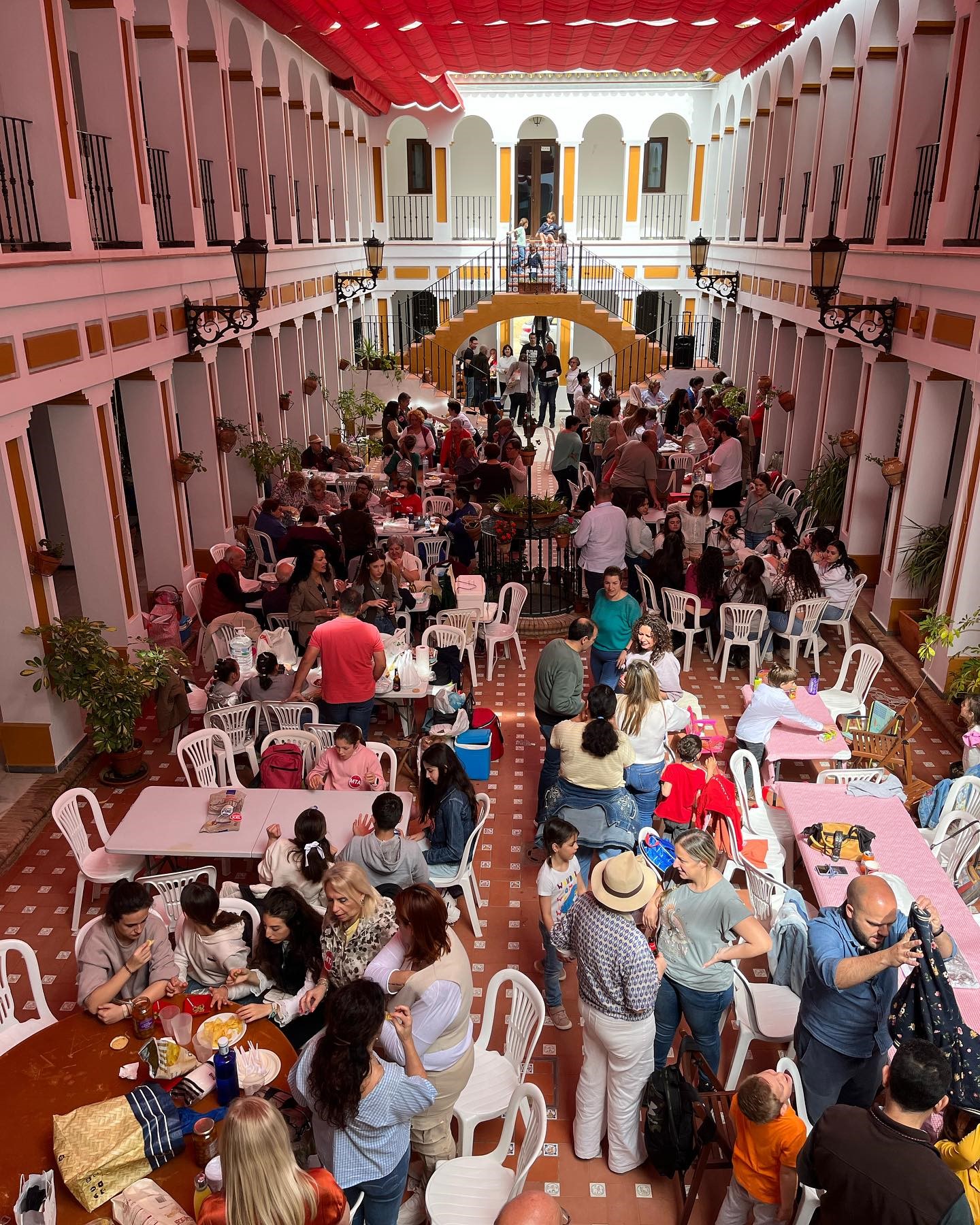 A seguir, reunimo-nos na Casa da Irmandade da Guarda Civil, onde partilhamos a comida, a conversação e dançamos ao som de cantos e sevilhanas.