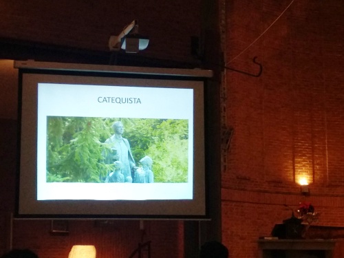 Na terça, quarta e quinta-feira, os três dias foram dedicadas às crianças, pois, como são cerca de 240 as que se estão preparando para a Primeira Comunhão, tivemos que dividi-las em grupos para a celebração. Rostos de espanto e intriga porque começávamos a catequese juntos naquele dia, porque as ia apresentar a um amigo de Jesus e, além disso, era o seu aniversário! E assim, pouco a pouco, e com a ajuda de uma projeção, fomos desvendando a vida de Henrique e o seu desejo de conhecer e amar Jesus e de torná-lo conhecido e amado. Então ficámos em silêncio, fechámos os olhos e perguntámo-nos o que queríamos fazer da nossa vida, o que queríamos ser quando crescêssemos; parecer-nos com Henrique, ser professores, sacerdotes, catequistas para que outros também conheçam Jesus… No final, demos-lhes o ponto de leitura procurando, entre todos, o que significava “regenerar a sociedade”; e acolheram-no com muito carinho e gratidão. E terminámos o nosso encontro pedindo a Henrique, através da música, que nos ensinasse a ser como Jesus. Tudo por Jesus!
