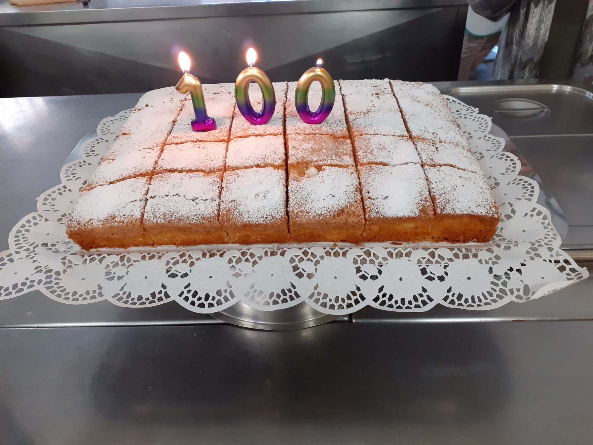 No almoço não faltou o bolo com as velas: cem, as que haviam sido diretoras do colégio sopraram-nas.