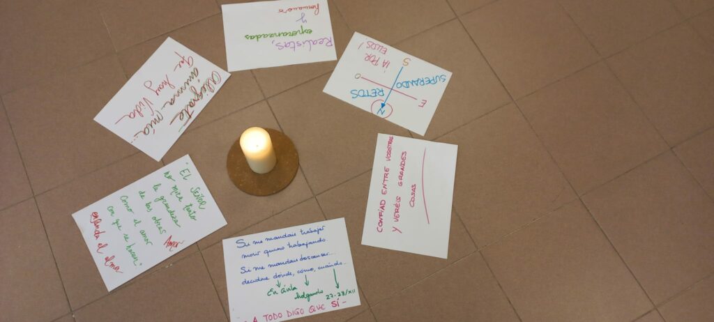 Compartimos en grupos pequeños lo que había sido este tiempo de oración, deseos, limites, la vida con sus búsquedas, lo que nos afecta y conmueve y que nos permite seguir caminando de forma personal y dentro de la Provincia.