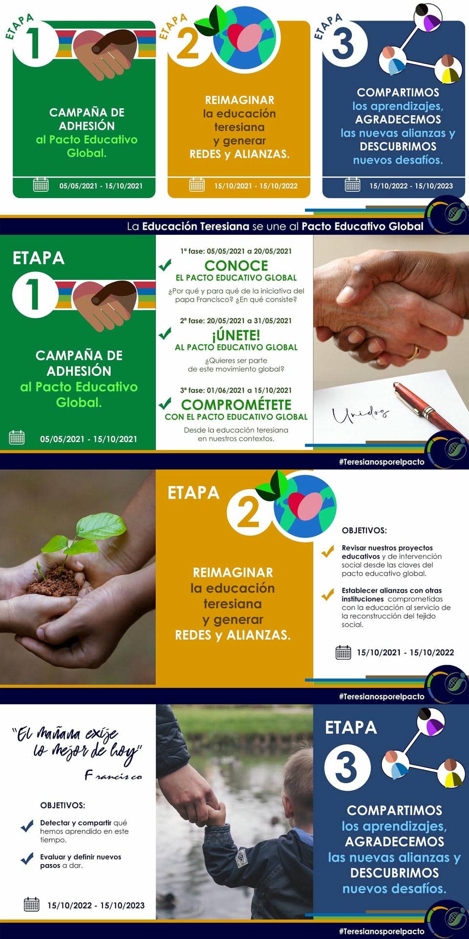 En septiembre de 2019, el Papa Francisco anunció su deseo de promover en todo el mundo un PACTO EDUCATIVO GLOBAL “para dialogar sobre el modo en que estamos construyendo el futuro del planeta y sobre la necesidad de invertir los talentos de todos, porque cada cambio requiere un camino educativo que haga madurar una nueva solidaridad universal y una sociedad más acogedora”.